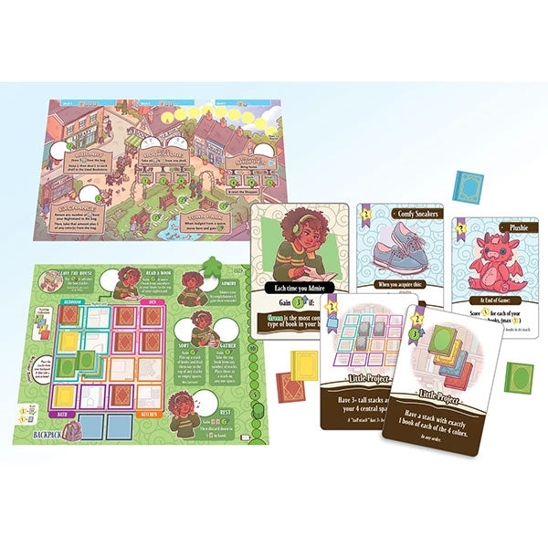 A Place for All My Books is a puzzley book gathering, sorting, and organizing game in which players arrange stacks of books in different rooms of their apartment as personal projects. When done, they can admire their accomplishments and gain their rewards – not least of which is renewed energy, which they can then spend to head out into the village...to pick up more books!