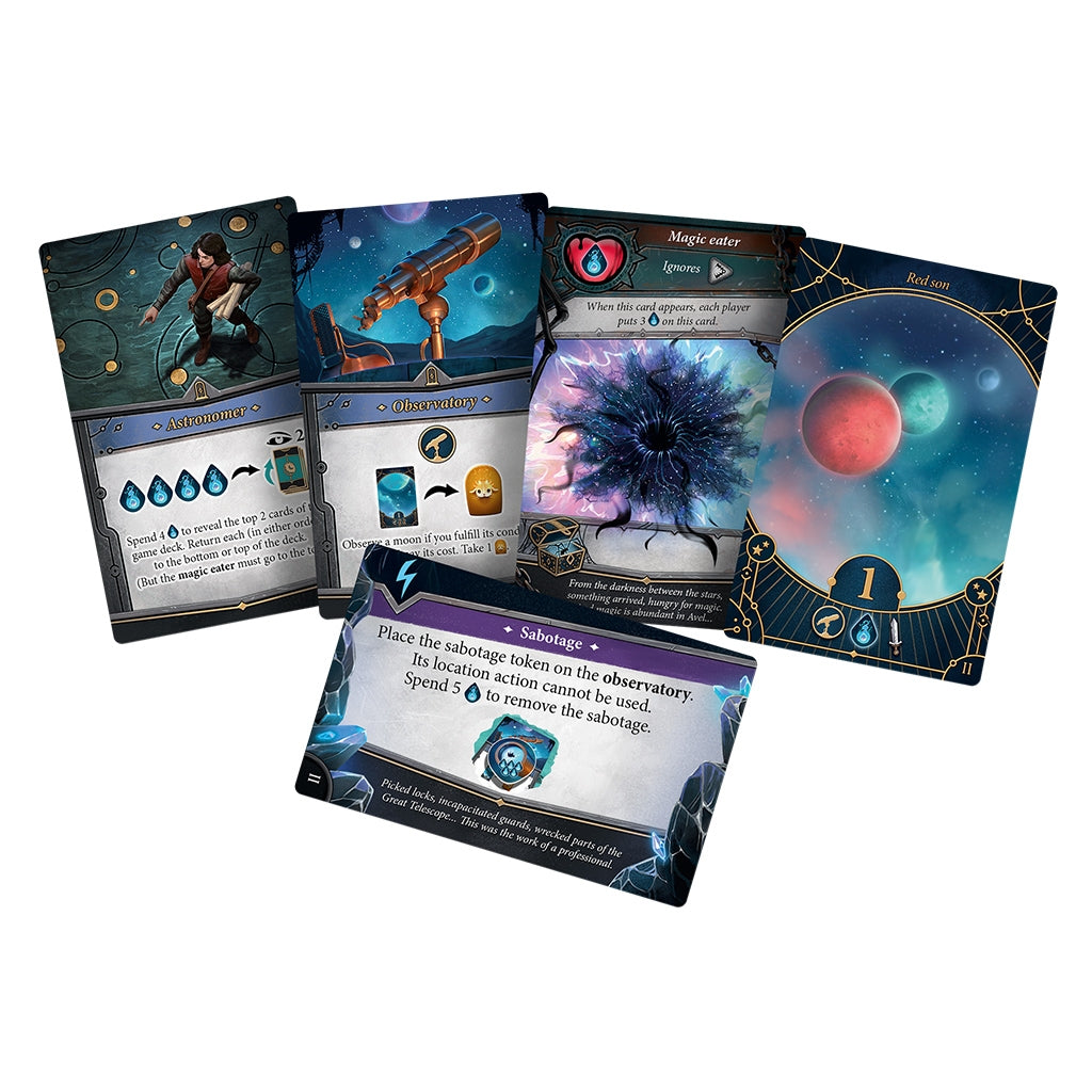 A cooperative card-based stand alone game in the Avel universe (Chronicles of Avel). Players work together through series of scenarios with increasing difficulty and various goals to stop monsters and save the magical kingdom.