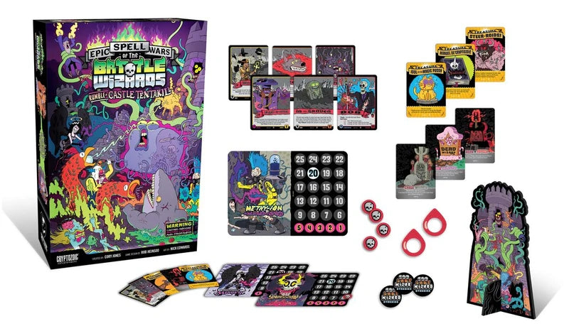 The sleeper hit has awakened! Epic Spell Wars II: Rumble at Castle Tentakill is here and it’s loaded with all-new ways to deliver a smoking death to all who oppose you. This stand-alone game is also 100% compatible with the original game, which allows players to turn an already epic game into an EPIC game. Epic Spell Wars continues its epic quest after airing on TableTop on Geek and Sundry! Featuring game design and all-new art from the original creative team of Cory Jones, Rob Heinsoo, and Nick Edwards.