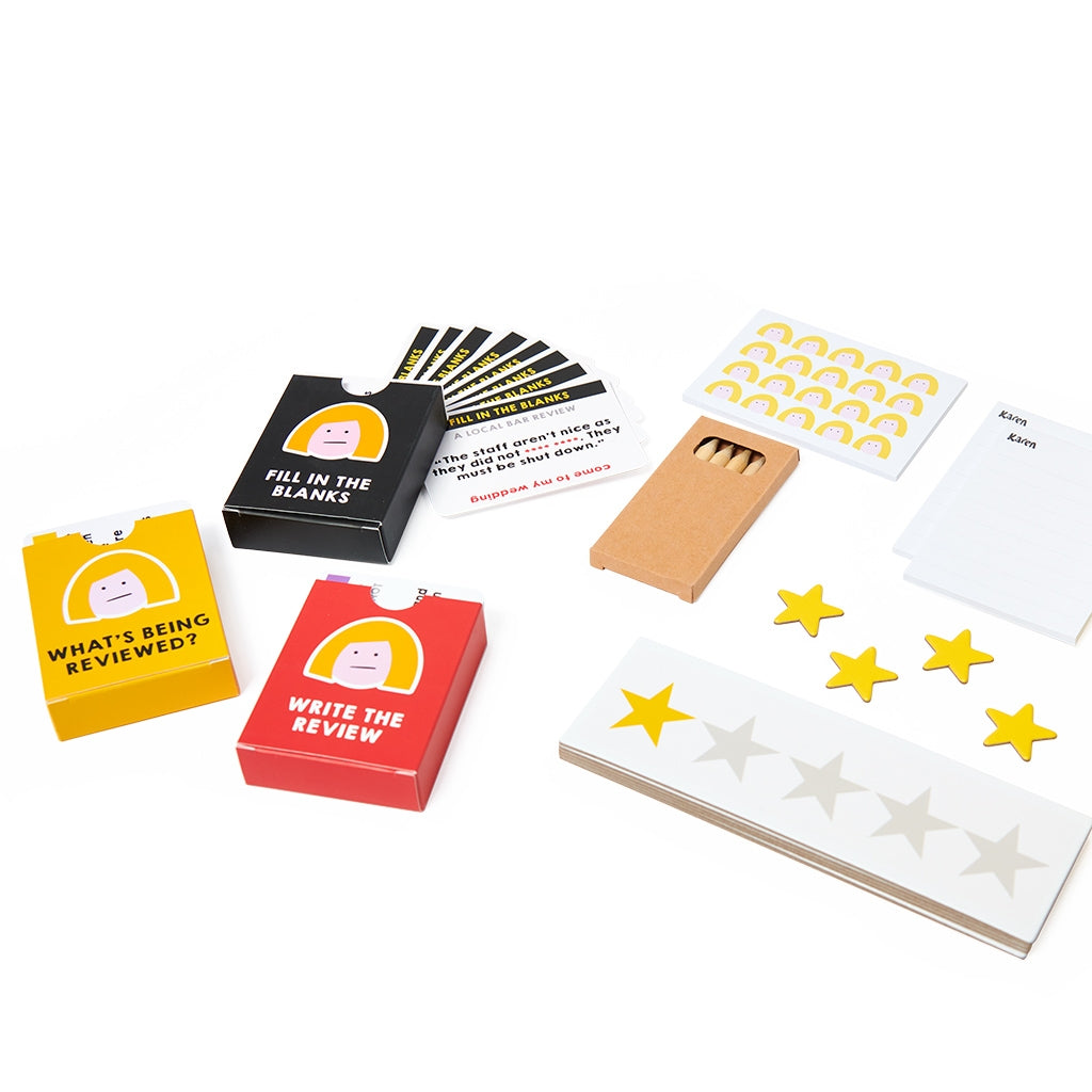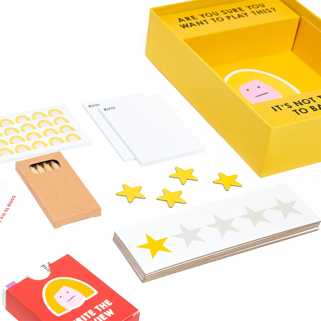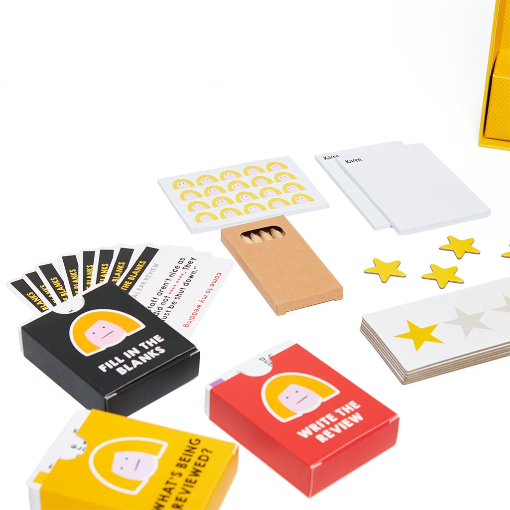 In Karen, each player sneaks their own fake answers in amongst hilarious REAL one star reviews found online, to try and convince their