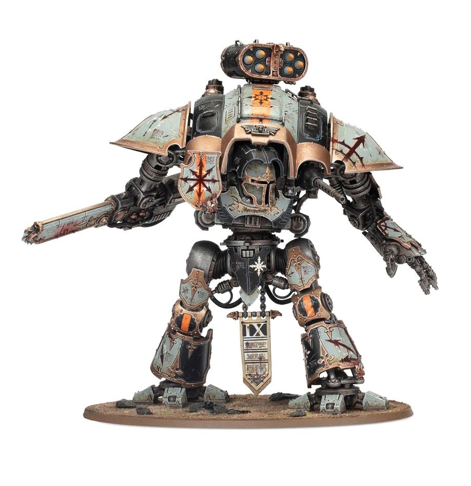 – Knight Warden, armed with avenger gatling cannon, heavy flamer, meltagun (which can be replaced with a Questoris heavy stubber), and reaper chainsword (which can be replaced with a thunderstrike gauntlet)