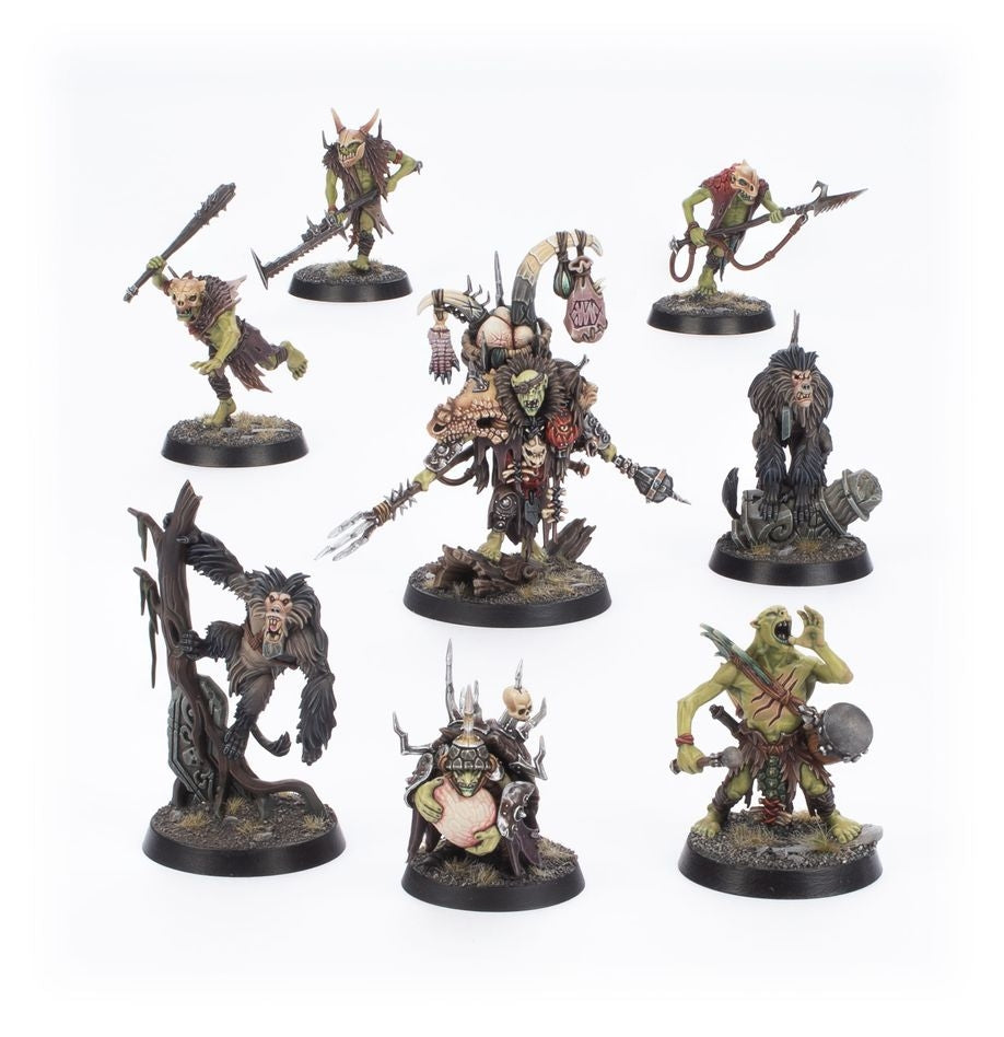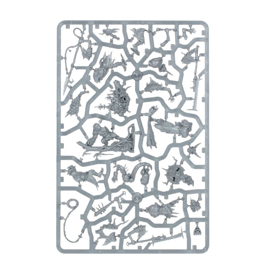 This multipart plastic kit builds eight Kruleboyz Monsta-Killaz, cunning beast-hunters for your Orruk Warclans armies in games of Warhammer Age of Sigmar. If you're going big-game hunting, you'll want to bring them along. Their long-handled weapons and lashes are ideal for subduing large beasts, and they're also handy for anyone else who tries to come at you. They're followed into battle by Gnarlwood Howlaz, vicious creatures that lend their animal savagery to your force.