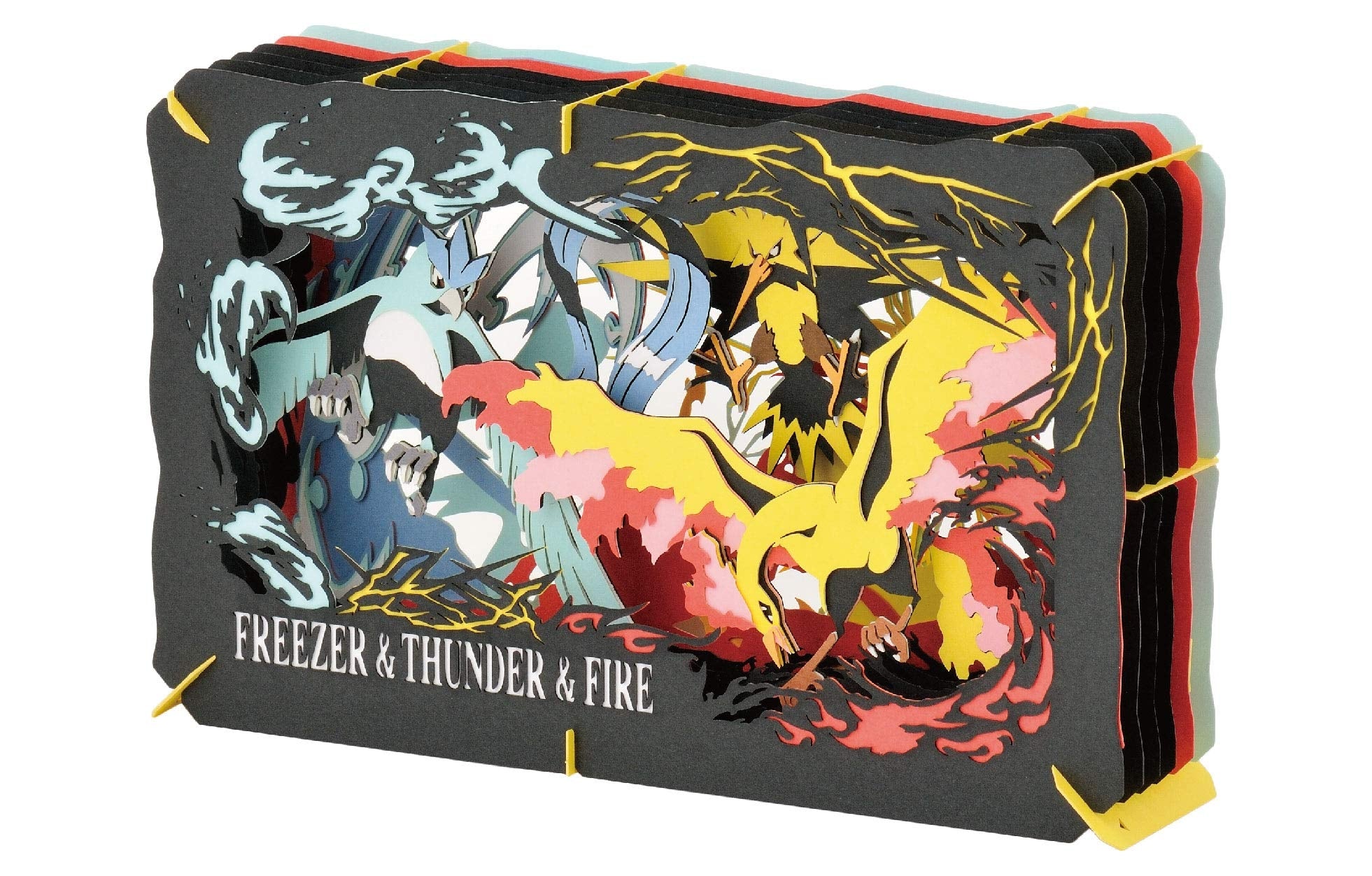 Ensky Paper Theater is a great way to see your favorite scenes come to life. Each layer has laser cut precise pieces that come together to create a complex and beautiful scene. Assembly and glue are required. This Pokemon Paper Theater Features the Legeneday Bird Pokemon, Articuno, Zapdos, and Moltres!